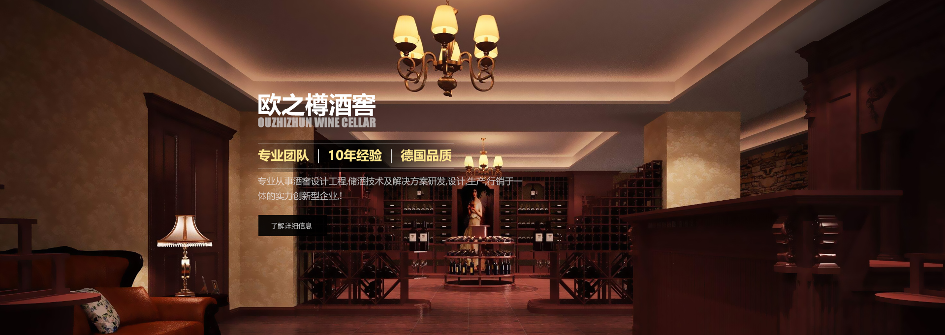 歐之樽酒窖專業(yè)的設(shè)計團(tuán)隊,通過學(xué)習(xí)歐美成功酒窖的經(jīng)驗(yàn)與國內(nèi)市場相結(jié)合,使得我們的設(shè)計充滿著歐美氣息的中國風(fēng)。能讓你在緊張的城市氛圍中找到在大自然 中享受美酒的感覺。歐美進(jìn)口的全自動控溫控濕系統(tǒng)既穩(wěn)定又方便,